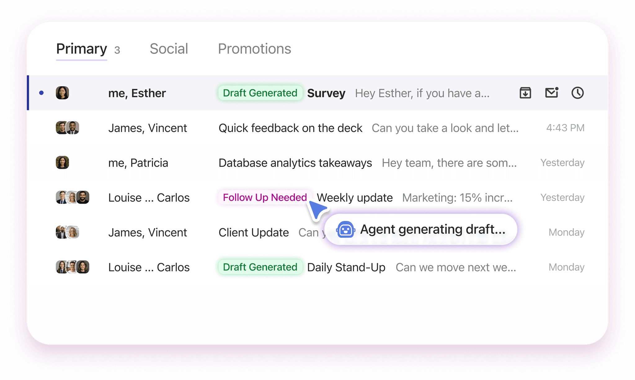 Stay focused and get back to real work. Upstream handles your inbox — drafting, organizing, and managing messages so you can spend time where it really matters.